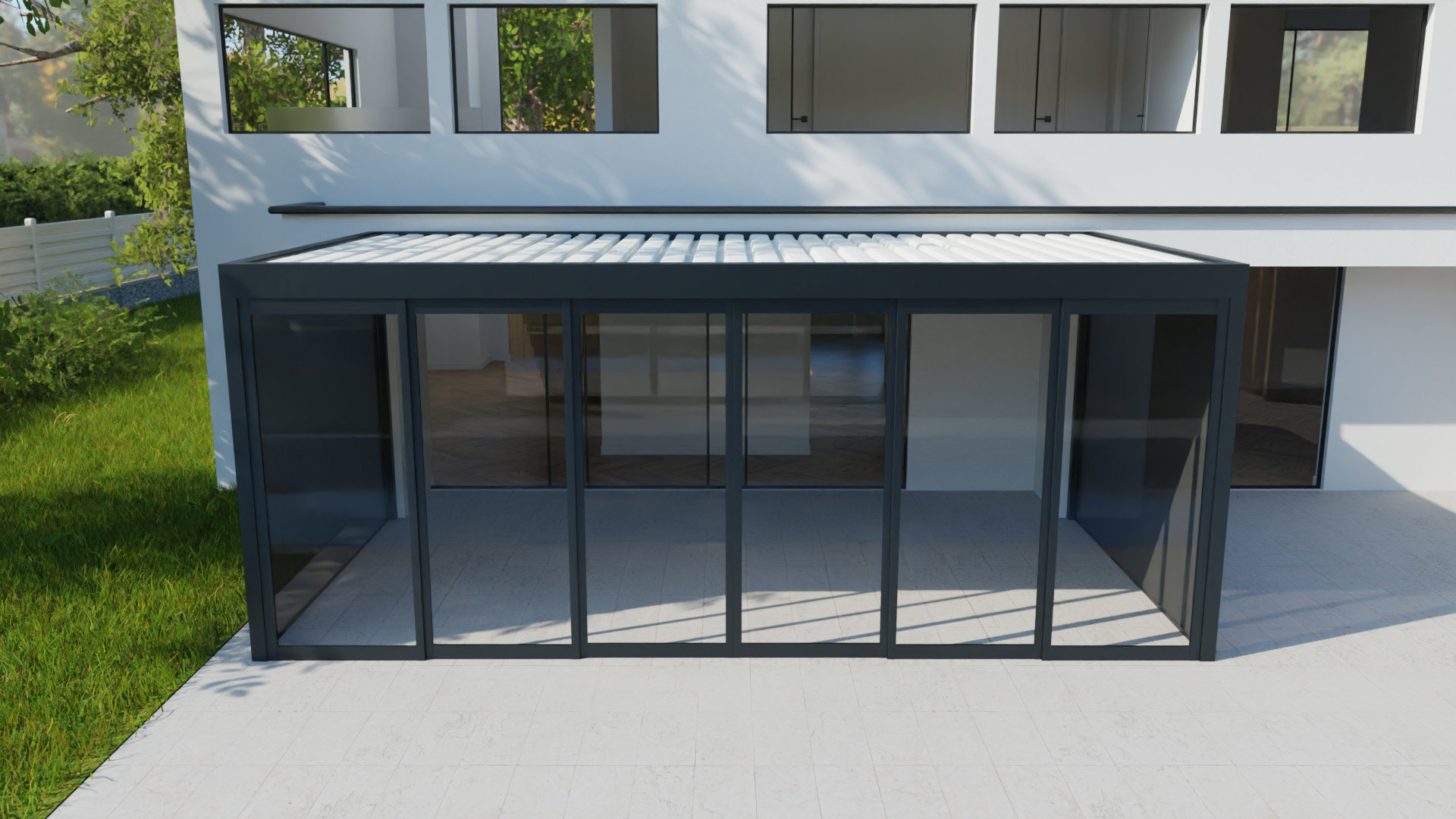 The individual aluminium elements of the sliding panels can be colour-tuned with the ARTOSI pergola or carport, because the offer of standard colours is identical. Any RAL colour can be chosen for painting, and for panels, Decoral technology is also available.